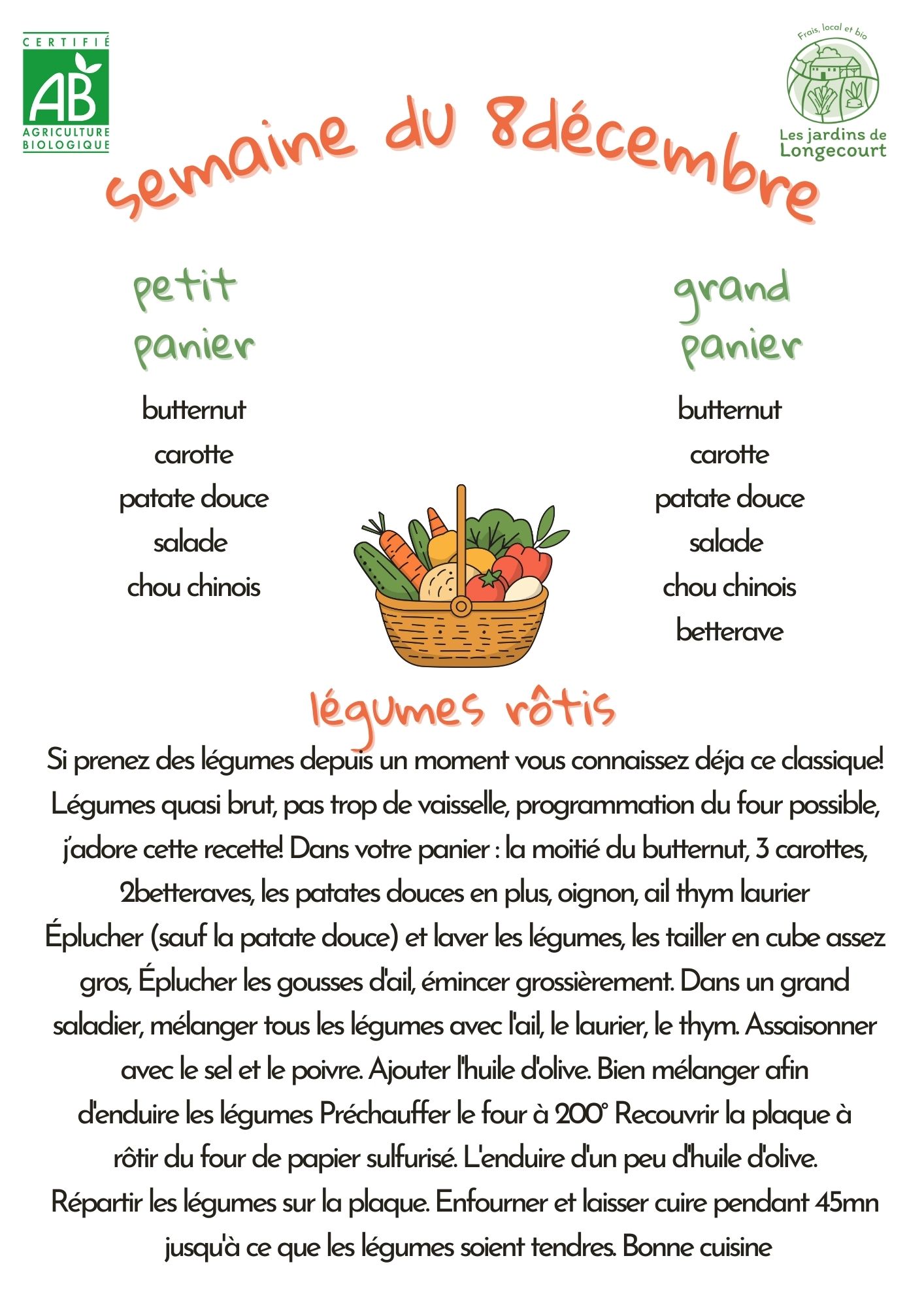 La composition des paniers peuvent varier à la dernière minute en fonction des récoltes
